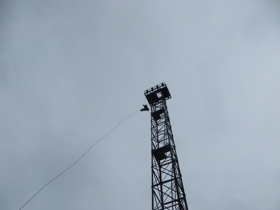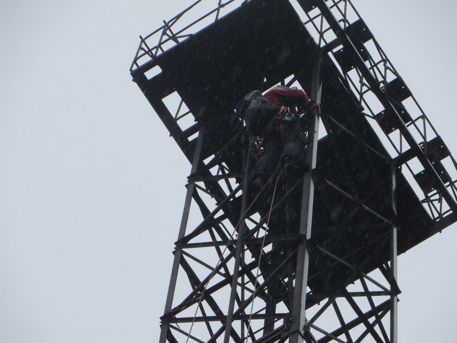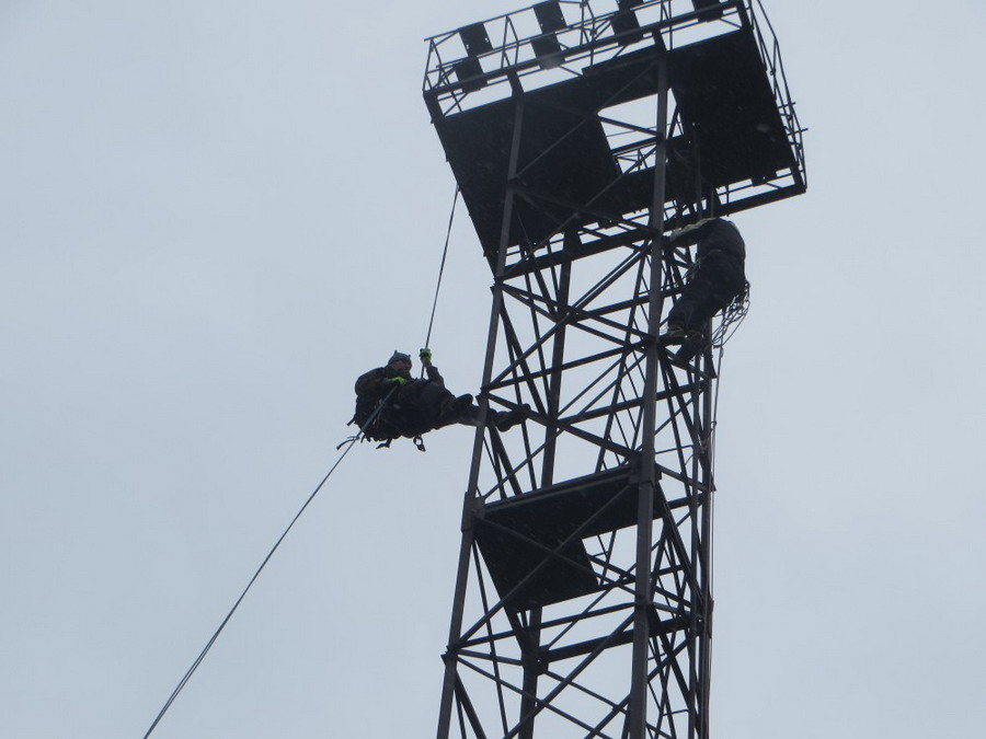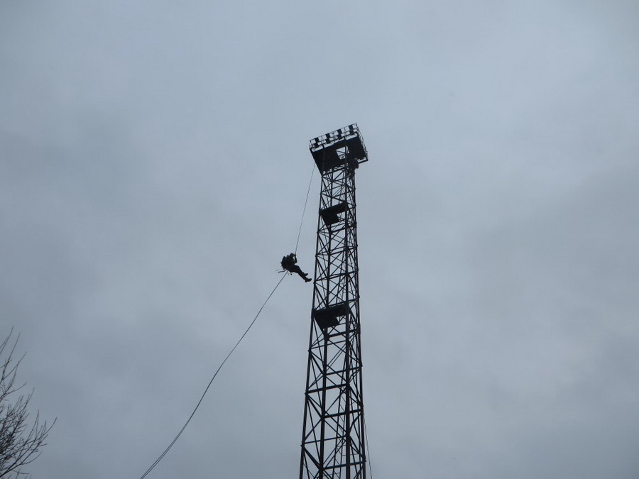 Дмитрий Прокопенко вызвался лезть первым с нижней страховкой. Поднялись на вышку. Причем без использования лестницы, а снаружи по перекрытиям, что уже физически непросто. Скорость передвижения Глаз снизу императивно стимулировал не дозволенным для публикации лексиконом.