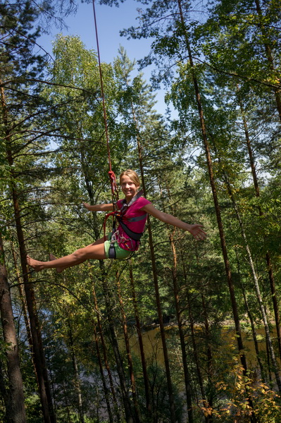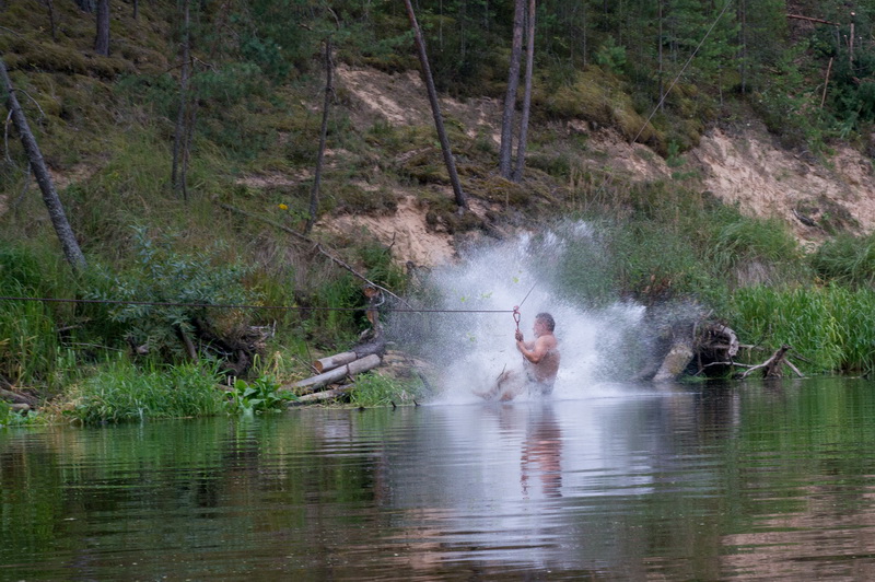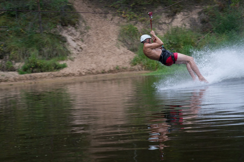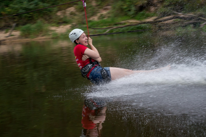 В конце концов соорудили, что хотели, что могли и что не планировали даже. Подготовили кинотеатр для вечернего просмотра фильма. И, айда, прыгать на троллее в воду.