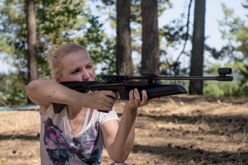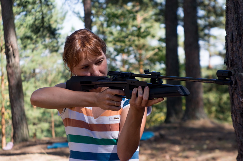 Оля Смирнова и Катя с двойной фамилией осваивают стрельбу из того, что первым в руки попало