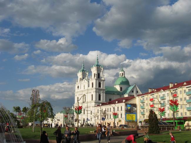 Спустя час мы вышли на большую площадь, на которой располагались сразу два очень красивых костела, танк на огромном пьедестале, знаменитый Гродненский театр. Пройдясь поочередно по всем располагаемым на ней достопримечательностям, свернули в переулок, и пройдя несколько десятков метров, очутились у двух гродненский замков. Попутно прошли православную церковь, правда почему то она нам показалась очень необычной, как то вроде ничего особенно, но все равно что-то не то.