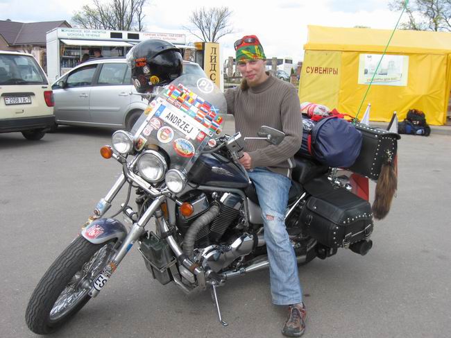 И вот мы в Мире. Жуткая суета, обилие туристов, даж как-то немного противно стало. Жутко развеселила встреча с байкером-поляком, которого мы час назад видел. Постояли с ним минут 10-15 похихикали, да пофоткались на его красивом байке.