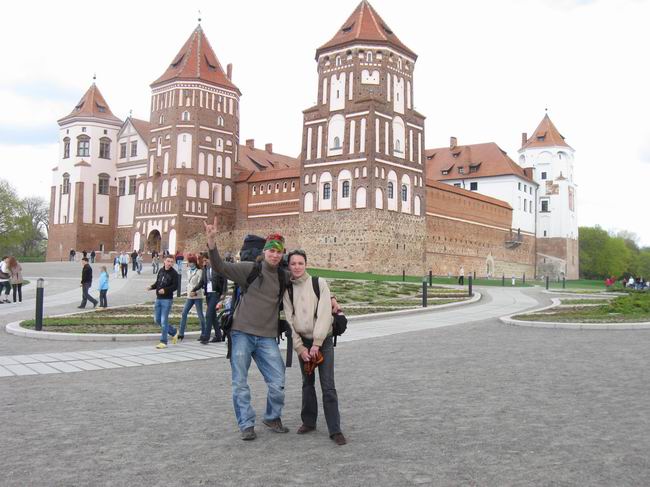 На трассе долго ждать не пришлось. Первым мимо нас проехал веселенький байкер на нарядном железном коне. Видя что мы стопим – презабавно помахал рукой указавая на то, что не против подобрать только мою спутницу. Спустя несколько минут мимо нас пронеслась на огромной скорости шикарная машина, правда по непонятным для нас причинам метров через 500 резко притормозила и начала разворачиваться. Неужели за нами? Так и есть! И вот мы уже в пути с замечательной молодой парой. Просто наиприятнейшие люди: контакт и взаимопонимание, обоюдный интерес были достигнуты практически сразу. Не помню, о чем мы говорили, да практически обо всем, дорога до Мира пронеслась мгновенно, будто не 60, а всего 6 километров разделяют эти два города.