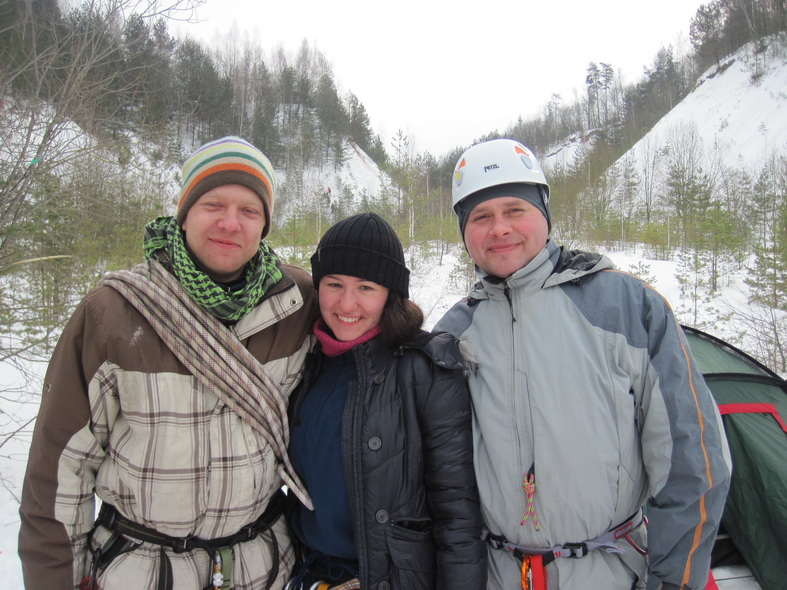 Отрабатывала технику подъемов, спусков, срывов на учебных склонах Красносельска и тройка в составе Вити, Максима и жены Полянского Максима. В воскресенье эта компания и меня взяла в связку. Готова поверить им на слово, что наши условия были в некоторой степени
