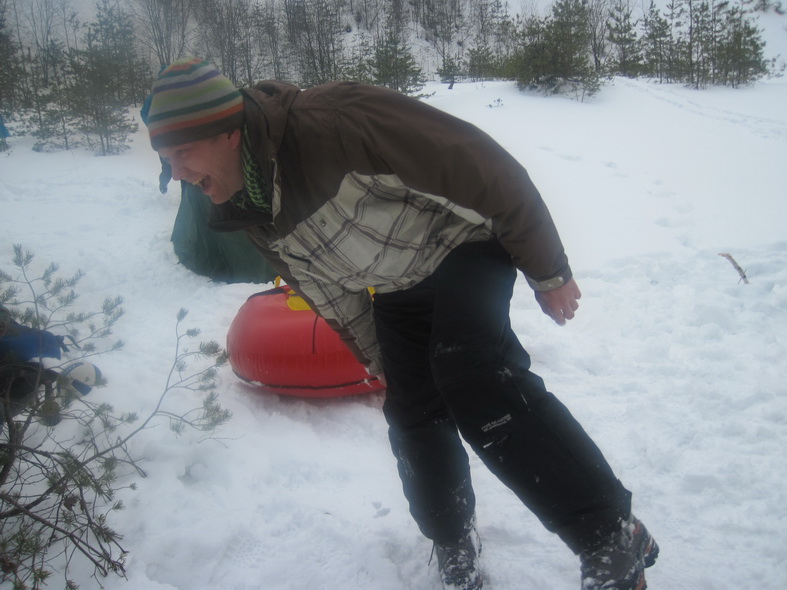 Утро же с Magadan.by у меня стойко ассоциируется с какао от Саши Смирнова – от этого напитка очень уютно в лагере. Это не единственное его фирменное блюдо – еще глинтвейн и скумбрия на костре (это воспоминая со времен поездки в Дениши 2012). В воскресенье и по мишеням стреляли, и поставили настоящий рекорд для «Книги рекордов Гиннеса 2013» – волейбол на снегу вблизи проруби от сектантов Magadan.by – 38 ударов!!! ДА! Мы такие! Мы это сделали – 38 ударов!!!