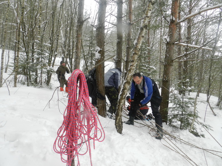 Для тренировки я провесил между двумя деревьями мини-троллей, на котором показал по шагам перестежку и спуск. Все репетировали. Там же и произошел отсев тех, кто не постиг этой науки. Большую лепту в отсев внес Саша Крученок, который серьезным тоном провозгласил, что тренировка не нужна, и всем нужно сразу идти на троллей, и что потери в 25% личного состава запланированы, и поэтому бояться нечего. Правда, Саша Крученок потом сам же участвовал в спасении застрявших на троллее девушек.