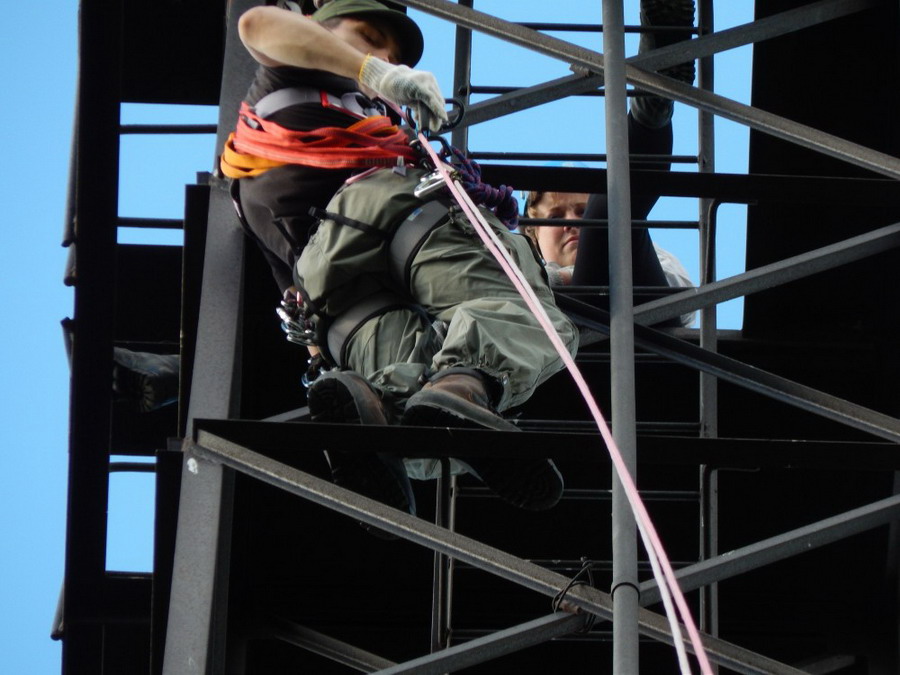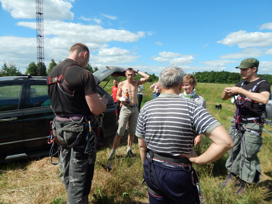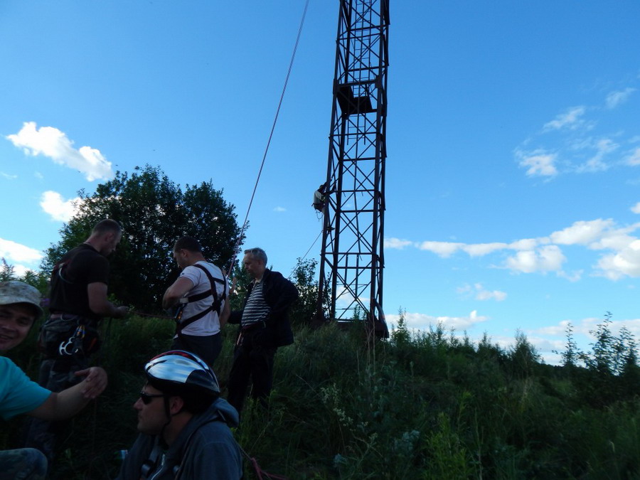 Первое собрание состоялось согласно текущему графику 28 июня за заброшенной торфоперегрузочной станции. Первой тематикой были подъем (с верхней и нижней страховкой) и спуск по периллам, что получилось куцо в урочище Вороничский Остров. В качестве объекта использовалась одна из заброшенных осветительных мачт со снятым электрооборудованием. Мачта ржавая, но прочная, а перекрытия для лазния оказались значительно удобнее чем таковые у тригопунктов. Высота порядка полуверевки.
