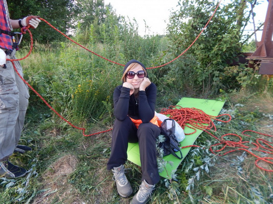 Пустырь этот Сектой использовался впервые и оказался весьма удобным в плане логистики, совершенно бесхозным и никому не нужным, поэтому свободным и не интересным для посторонних. Пикантным в эстетическом плане: непосредственная близость скотомогильника, свалки и кладбища. Картину часто также скрашивали поезда, регулярно бегущие по железной дороге. Несмотря на простирающийся обширный и унылый выгон, пейзаж скрашивается розовыми конусами цветущего иван-чая и пирамидальными стеблями конского щавеля и обильным стрекотанием кузнечиков. Этот день 28 июня прошел исключительно душевно в непринужденной обстановке – оказалось погоже, солнечно и при этом абсолютно не жарко. Кворум составил 16 участников. Лазили и те, кто не идет в Сванетию. Кто не лазил выступал группой поддержки.