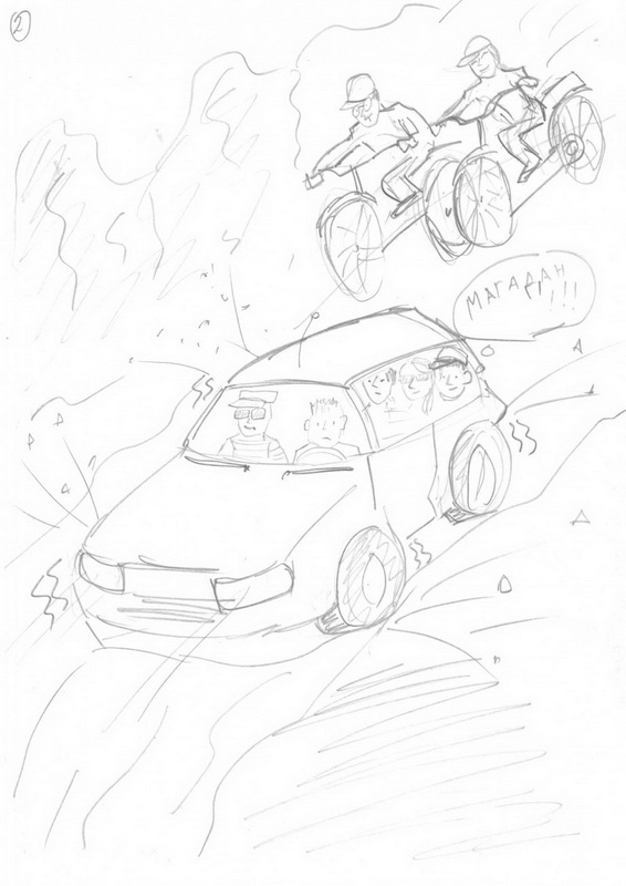 – О! Тоже наши на великах добираются, - пошутил кто-то. Приглядевшись , мы поняли , что это действительно наши - Саша и Оля Смирновы. Во блин дают.