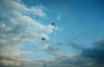 еще добавилось шума. Тоже снабженная парашютом инструктор перегораживала дверной проем рукой, а, едва убирает - необходимо сделать шаг и, с силой оттолкнувшись, выпрыгнуть в бездну.