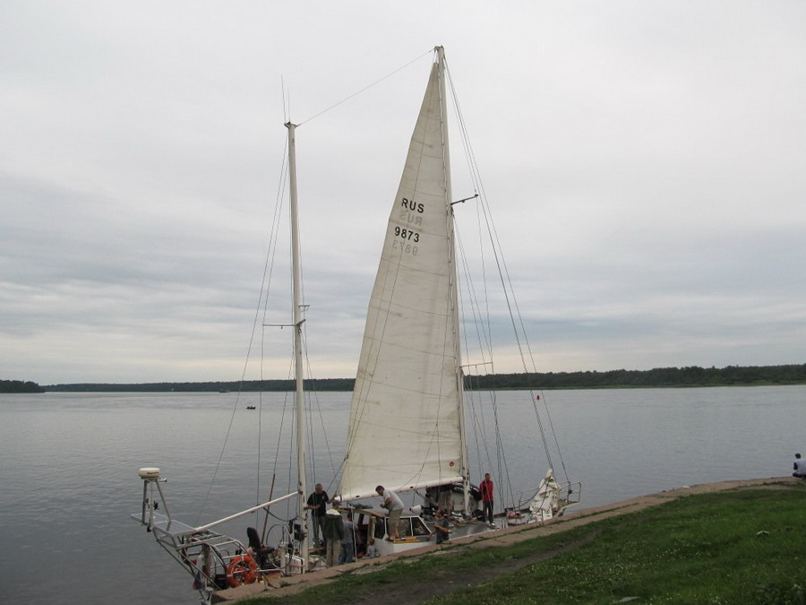 Вечером вышли в сторону Онеги и встали на причал прямо у истока Свири в селе Вознесенье. С причала пошел хороший клев, но глубины были большие, поэтому я переоснастил удочки в фидеры и стал ловить у дна. Ловили почти до утра. Азарт ловли захватил Сережу Климовича, а затем и Олю Конькову, которая спала на палубе, завернувшись в парус.