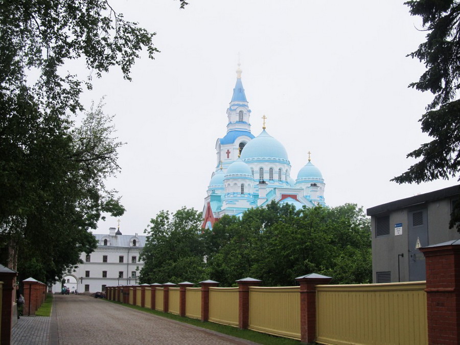 Осмотр острова решили начать со Спасо-Преображенского собора, который сиял своими голубыми куполами на всю округу. Тут же выяснилось, что ничто материальное священникам не чуждо: главный вход в собор вел вовсе не в собор, а в церковный магазин. В собор же вела маленькая дверка “за углом”.
