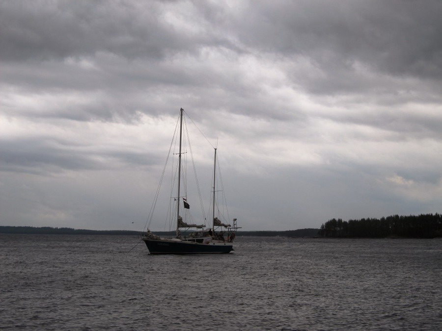Вечером мы впервые поставили паруса и ожидалось, что завтра по Ладоге пойдем под парусами. Смущал только прогноз погоды - обещали шторм и 3-хметровые волны.