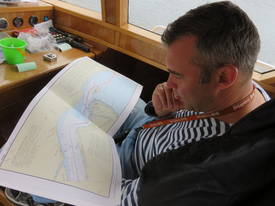 Проводка осуществлялась строго в соответствии с инструкциями диспетчеров, которые давали указания по рации, какому судну в какой последовательности проходить под мостом. В ожидании прохода нам несколько раз пришлось пришвартоваться к сухогрузам.
