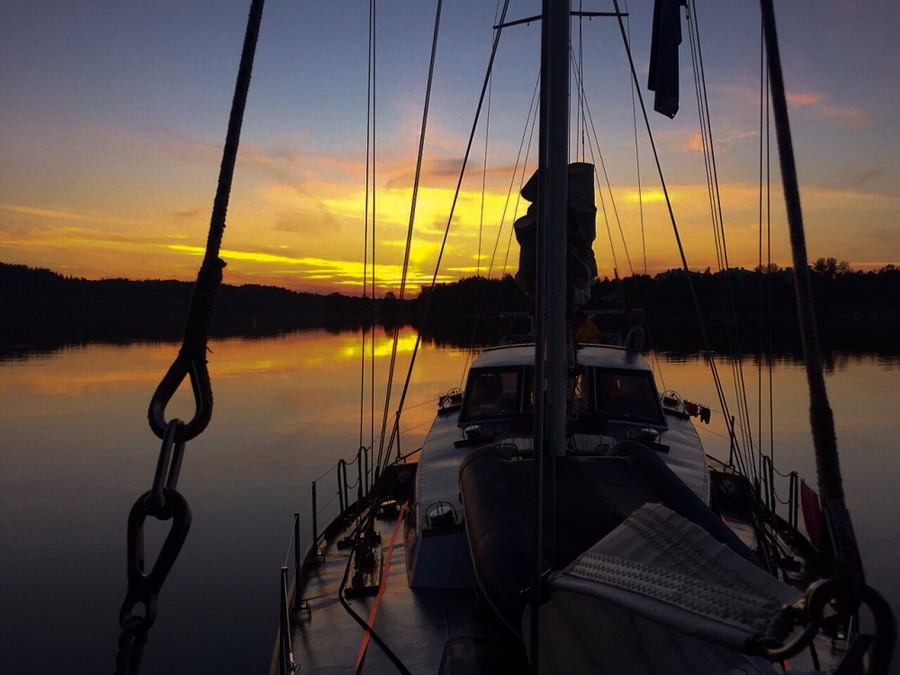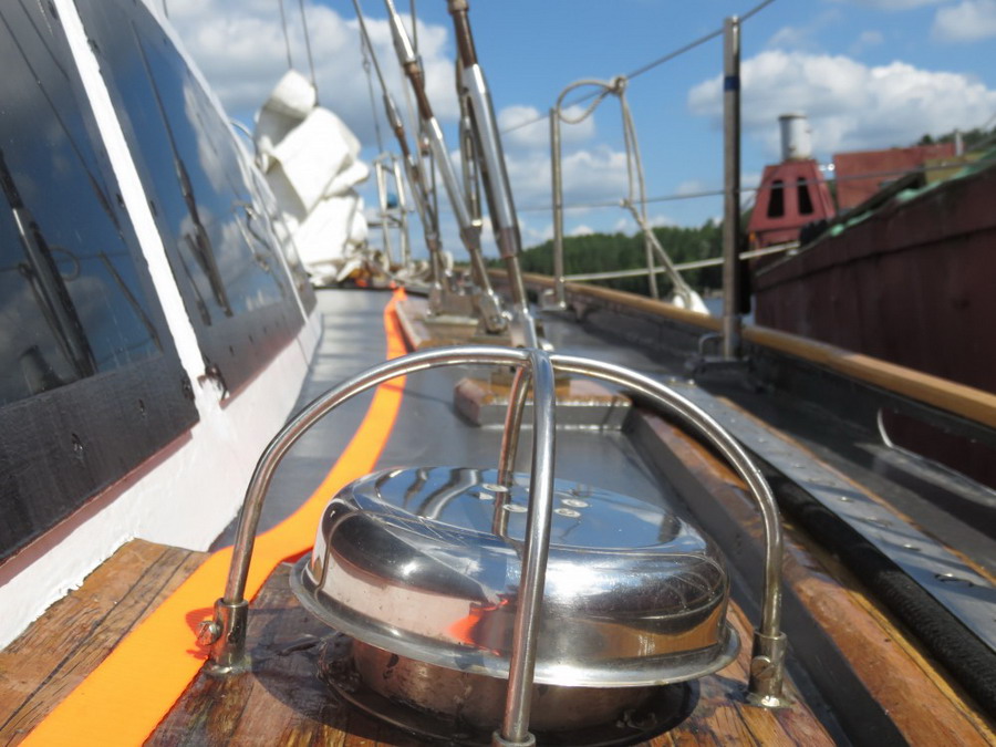 В предстоящем походе меня радовал тот факт, что мы пойдем на яхте не просто «болванчиками», как возят туристов на Седове или Крузенштерне и которые занимаются отбиванием ржавчины и драят палубу (впечатления знакомых), а постараемся познакомится с азами парусного дела, насколько это будет возможно. Поэтому Андрей на альтруистических началах провел для нас несколько теоретических и практических занятий. Так что к началу путешествия мы уже могли отличить бизань от грота, шкот от фала, левентик от фордевинда. А умение работать с веревками мы унаследовали из альпинизма.