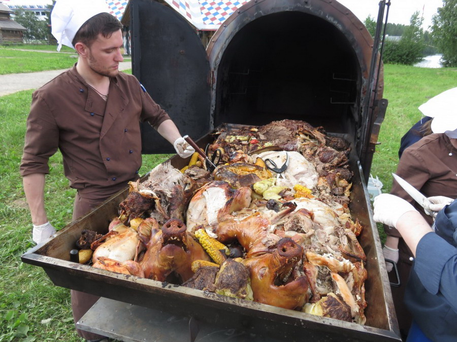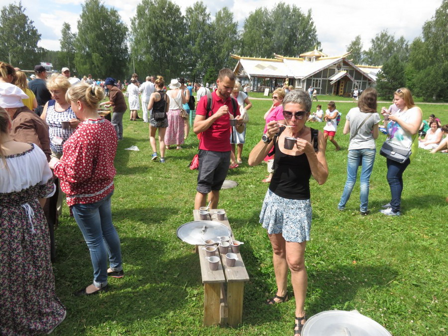 А на следующий день в Мандрогах был большой гастрономический праздник. На причал встало четыре больших теплохода, откуда на берег вывалились вальяжные туристы. Всем предложили продегустировать несколько различных видов борща - суточный, с судаком, с глухарем и с кислой капустой.