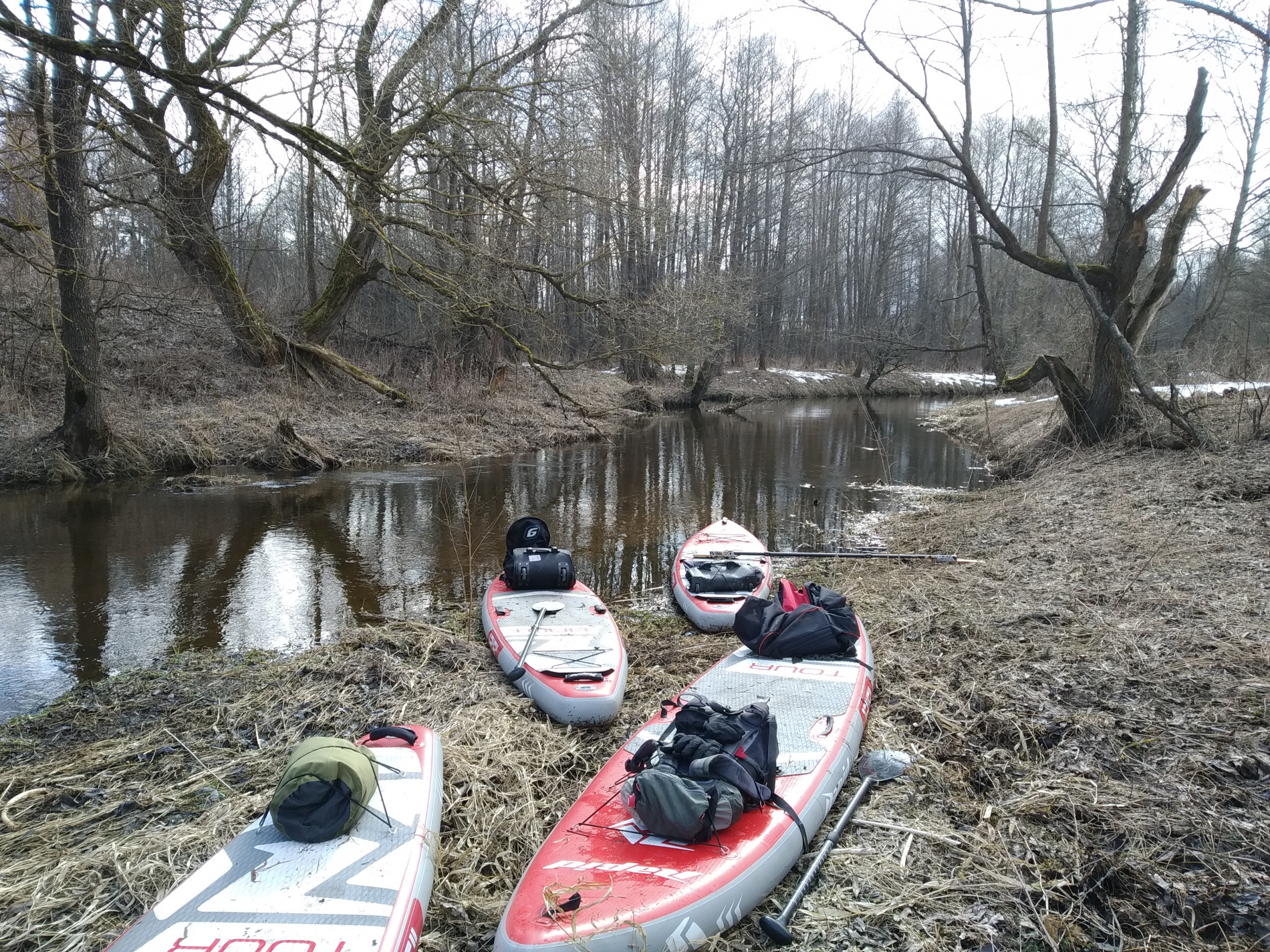 За поход планировалось пройти 28,6км на веслах. На поверку вышло, что прошли 13,7км запланированных в первый день. По объективным погодным причинам, как то похолодание и снег, во второй день решено было не продолжать сплав на досках. Не малую лепту в организацию, бытовую часть и атмосферу похода внесла Группа Моральной Поддержки и Технического Обеспечения. Впечатления от тех выходных остались сильные. Несмотря на то, что все сапбордисты изрядно вымокли и промерзли, не довольных походом нет. Сплавы на сапдосках это интересно и стояще!