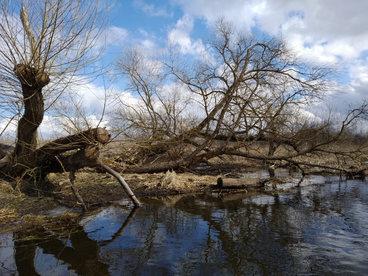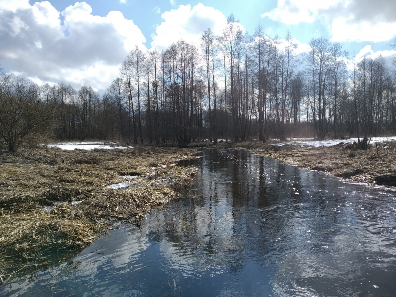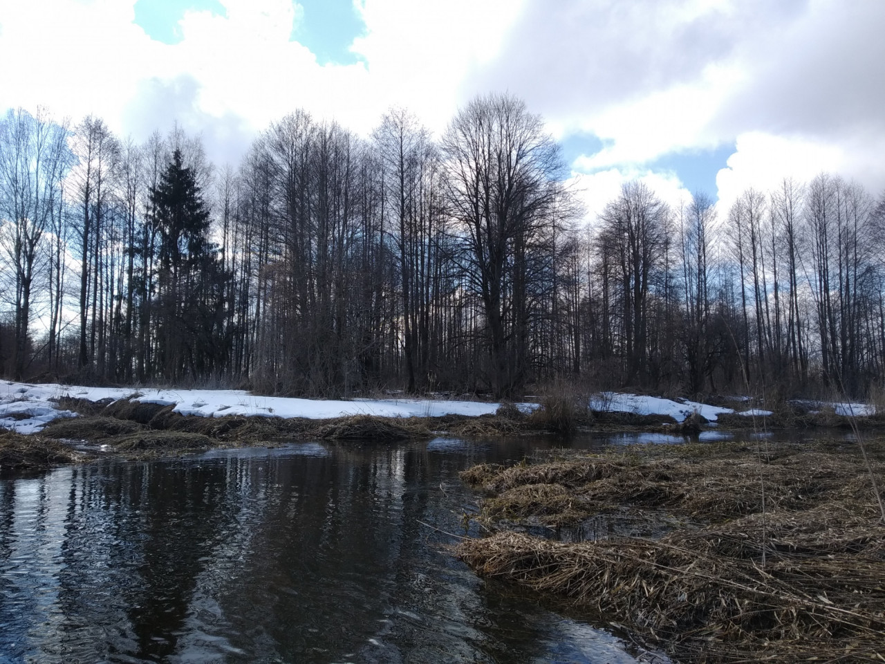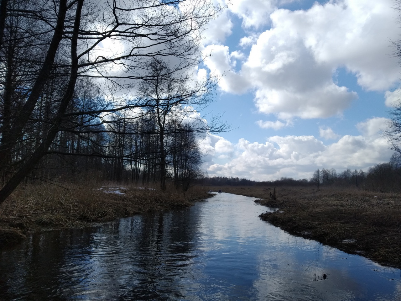 Весна выдалась поздней и холодной. Растительность, не успев еще возродиться после зимней спячки, стояла блеклой, безжизненной. Не видать ещё было ни проклёвывающейся нежной зеленой травки, ни трепетных почек. Вначале было солнечно. И это, если и не особенно грело, но радовало и приободряло. Желтый солнечный свет добавлял яркости унылым краскам ранней весны. Подсвечивал лишайники на коре деревьев, принаряжая голые, темные ветки. По воде резво скакали солнечные зайчики. У берегов гладь воды ещё затянута тонким ледком. То там, то тут лежал снег. Ярких красок этой никлой палитре добавляло лишь небо. Синим куполом с пушистыми бело-серыми облаками высилось оно над непроснувшейся ещё землей.