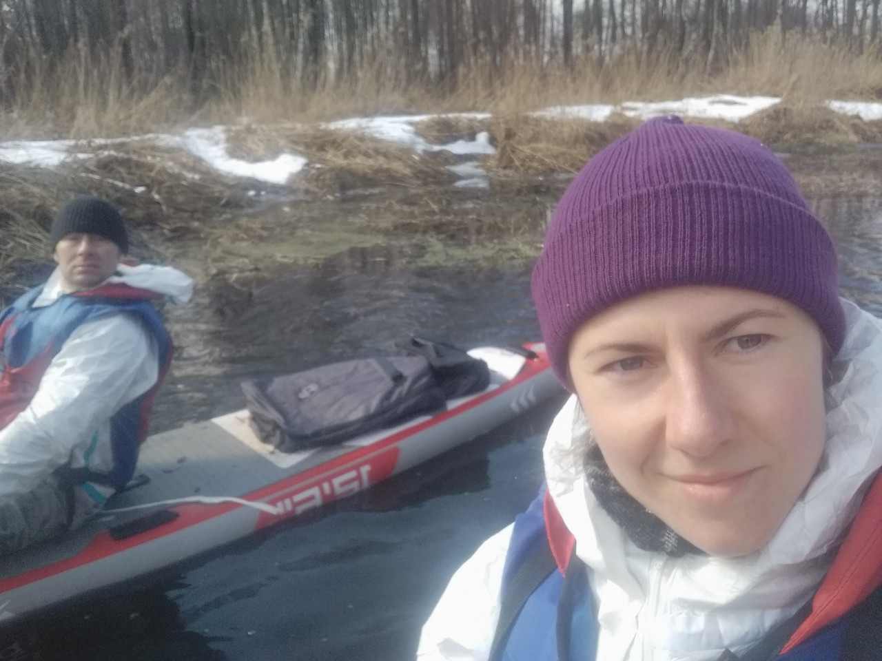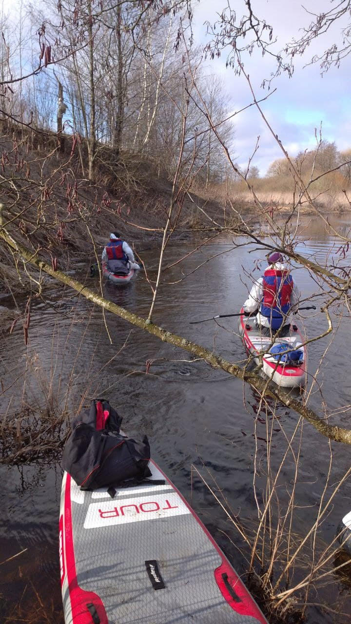 Помню, как в ноябре 2017 года в поход по реке Нарочанка с нами ходил Антон Супрунюк на сапдоске. Тогда это было в диковинку. Лично я такую доску видела впервые и про сапбординг ещё ничего не слыхала. Выглядела она странно и ненадежно. Поход тот, нужно сказать, выдался в лучших традициях Глазовских походов- максимально запоминающимся и трудоемким! До реки нужно было ещё добраться, преодолев три озера, включая Нарочь, где в то время разбушевался шторм. Казалось невозможным выстоять против тех волн на непонятной надувной доске. Антон тогда выстоял. Это мне запомнилось и заинтересовало- что же это за доска то такая…? И теперь, когда анонсировался целый поход на сапдосках, мне очень захотелось попробовать.