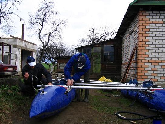 В условленное время дома Кирилл оказался. Спустя некоторое время приехали и Дед с Женей. Нужно было быстрее брать, а то уже весла не прилагались. Более того, Человек-шкаф хотел зажать добротную желтую сумку. Но добротную желтую сумку все-таки выдурили. Спустя еще дня четыре Глаз ходил туда же с Человеком-Рукой забирать треснутую алюминиевую трубу, которую Кирилл с большой массой тела не додал. Так или иначе, катамаран был уже моим.