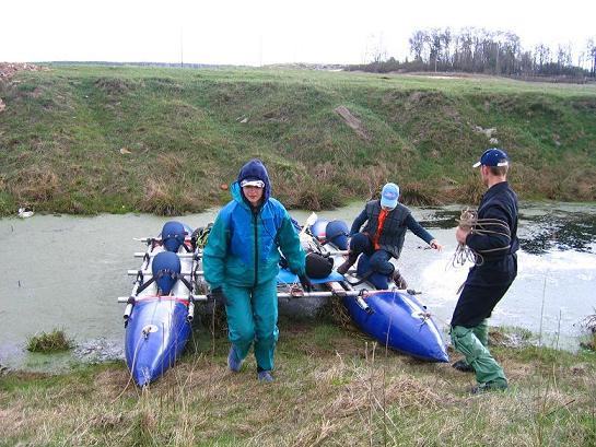 Не торопясь, мы продвигались к финишу. С удочками на берегу сидели усатые мужики. Посоветовали не объединять рамой баллоны, а ехать так. Мы объяснили усатым мужикам, что по ихнему все развалиться.