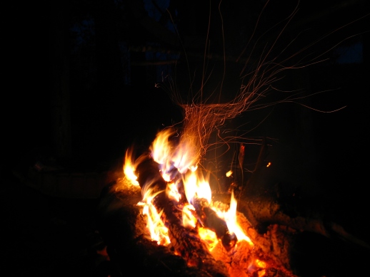 Все, кто попробовал хоть раз костер из пихты, уже не смогут его забыть. Стрельба не прекращалась ни на секунду. Дрова посылали в горящий воздух все новые и новые снопы искр. Я про это знал, но забыл. Сейчас только вспомнил.