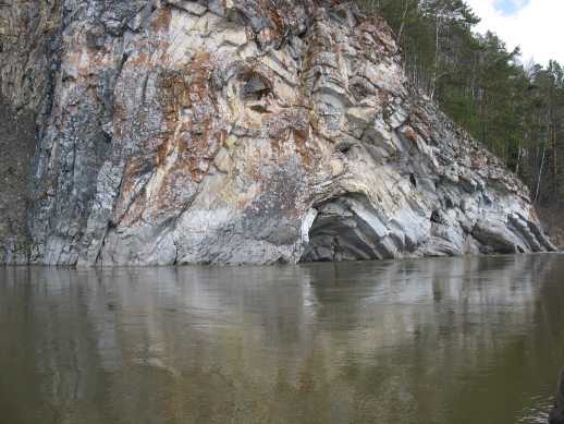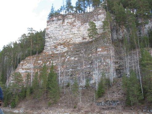 Мрачная серая стена прогнулась в середине и словно плачет от непосильной тяжести: в центре его постоянно просачивается вода. Огромные слои – складки, расположенные почти горизонтально ступенями, напоминают недостроенный амфитеатр.