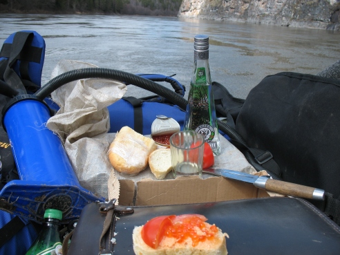 Диджей Ясь, как угорелый несся вниз по течению. Описание вместе с картами мы забросили в водочный ящик. Развлечений хватало: проносились, как торпеда, вдоль кустов, скал. Ветер сегодняшним вечером устроил нам передышку. Дождь тоже идти не собирался. Искали место для бани, но все совсем не то. Высокая вода. Все затоплено и негде насобирать булыжников, или дрова далеко носить.
