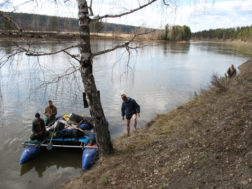 Ехали и питались прямо на воде. Наловчились поддувать катамаран, не высаживаясь на берег. Но сегодня высаживались. Но по нужде, а заодно и покачали. Яся сталкивали в Реку, фотографировали, возвращали на веревке обратно.