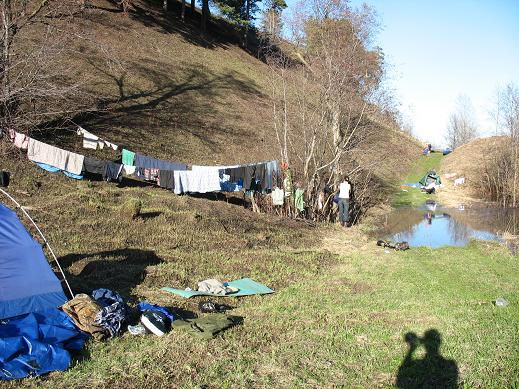Я старался не раздражаться. Это плохо получалось, но получалось. Еще нужно было по-разному отвечать. И от нехватки времени и частично от лени за зиму в Минске я не съел даже половины мешка картошки: она проросла и сморщилась. Сейчас в походе очень хотелось. На ужин мы наварили как надо, сделали салат из свежих овощей, как надо. Под такую закуску, да еще и в завершении похода не замочить было бы не но людски. Темнело. Диджей Яся был к этому времени уже зачехлен. Что нужно было роздано по рукам. Естественно просушили плохо, но сколько успели.