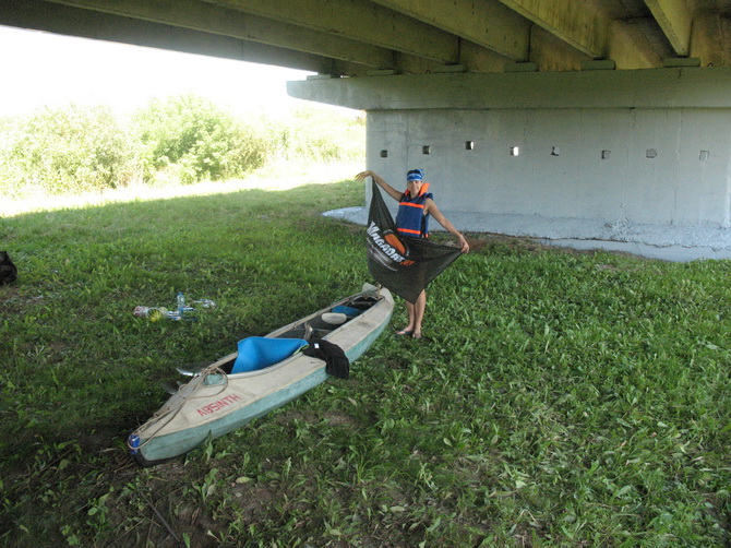Выгрузились на пляжике, где явно любят отдыхать жители окрестностей. Собрали байдарки. За Эдуардом с Володей приехал товарищ, который повез их в Кричев. За нами же заехал тот самый микроавтобус, но только без сидений. Пришлось ехать на рюкзаках. На вокзале в Кричеве Фрэнка забрал Эдик, который как раз ехал в Минск через Могилев. Остальные сели в поезд.