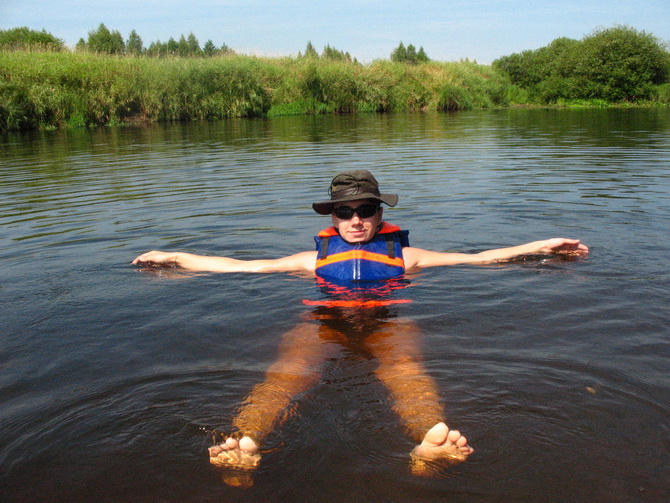 Остером все были довольны, он то расширялся, то сужался, менялись пейзажи и рисунок берега, были участки, называемые «затерянный мир» где деревья смыкались своими кронами, и поляны. Местами на берегу встречались аборигены (все чаще рыбаки). Кстати, рыбы в этой реке было огромное количество и, со слов местных, словить можно практически все. Вокруг берега встречались лилии, как белые так и желтые. В этот день было пройдено около 30-ти км. Сойдя на берег, начался процесс по формированию лагеря. Потом приготовление ужина (от начала и до конца этим процессом руководил Саша П., который известен всем «магадановцам», как профессионал в данном сегменте), фуршет и пьяные споры и беседы. Особенно словоохотливым был Фрэнк, которому есть что сказать по любой теме. Аппонировал ему Саша Смирнов. Андрей, как из пулемета строчил анекдотами, девушки хихикали и беседовали о чем то своем. Явно утомленный Стас ушел спать первым.