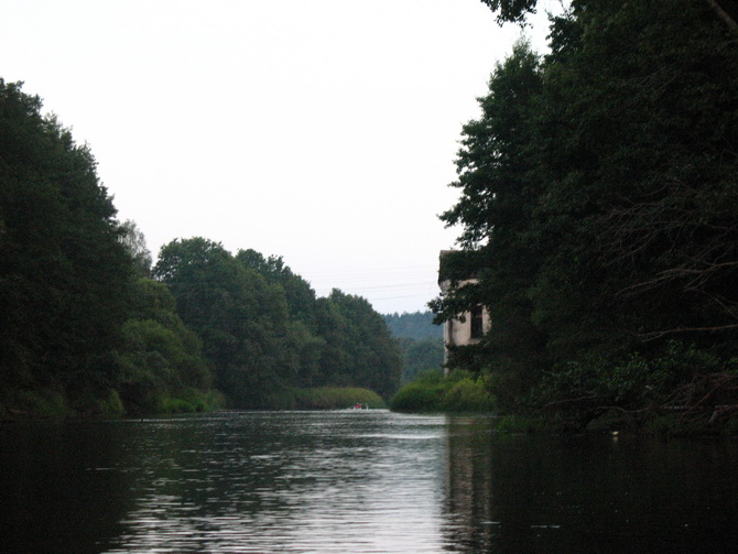 Прошли еще три часа. Даже видели интересное заброшенное белостненное здание. Скорее всего, была когда-то водяная мельница. Возле деревни Русское встретили детей. Последние объяснили, что байдарки видят впервые, что есть водочный магазин, который неподалеку отсюда. Работает до 20 часов, то есть осталось нам еще полчаса.