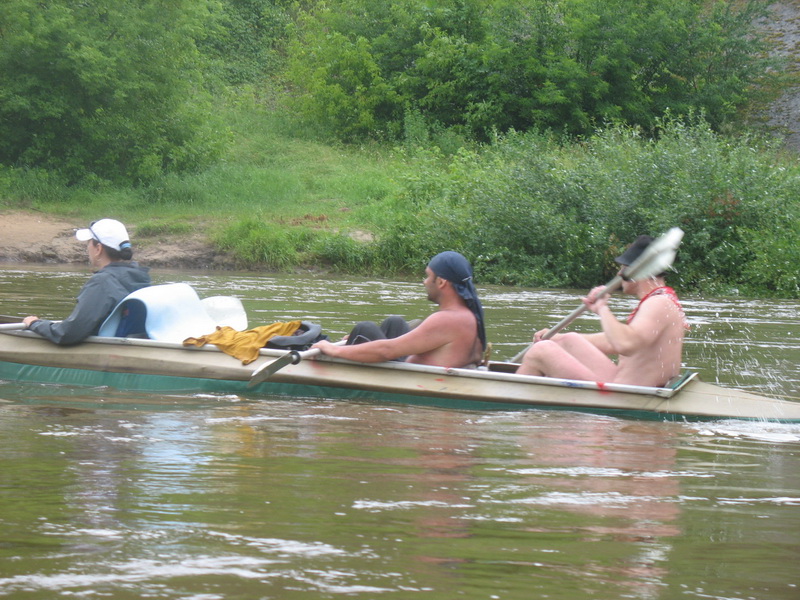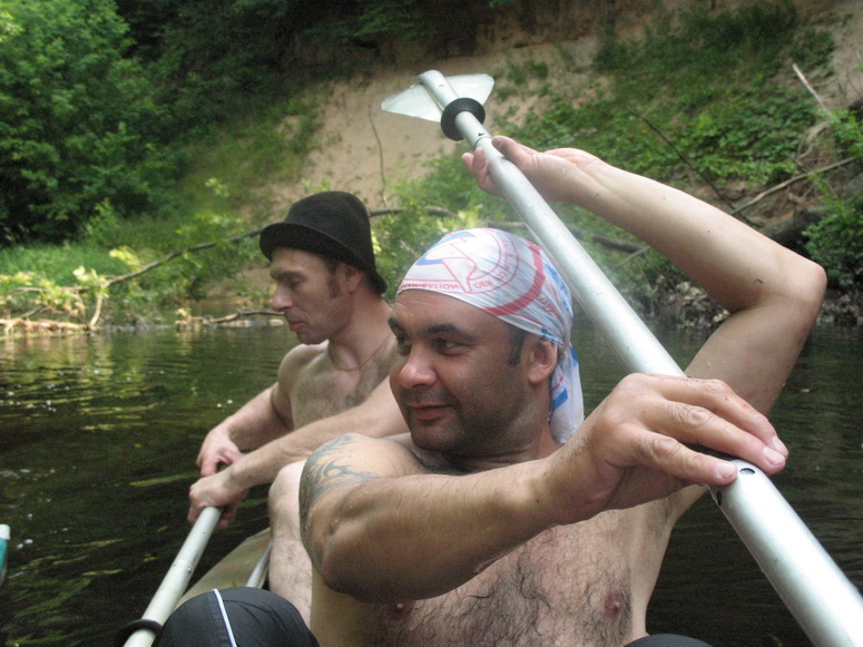 Пообедали немного и добавили совсем не много (без членов желтой байдарки с юбкой). Что нужно выступать не мешкая и махать веслами, было всем понятно. Байдарочная бригада совсем стала вести себя экспрессивно. Как индикатор начинающехся перегибов, Андрюша Русьянов стал производить реплики сугубо ненормативными выкриками, и выкриками говорить про содомитов.