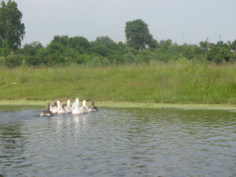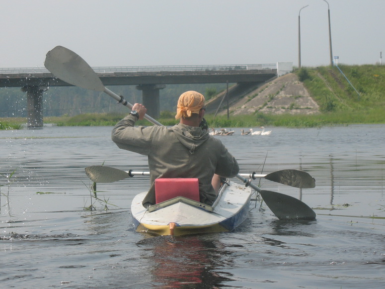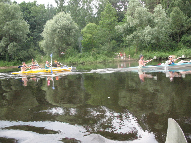 До Немана было уже не далеко. К моему изумлению, войдя в бывший Неман (а нынче Гродненское водохранилище), я увидел впереди двигающийся конвой из наших байдарок. Послеполуденное солнце отражалось блестящими сонечными зайчиками от лопастей равномерно лопатящих воду весел. Лопатящих в обратном от целевого направлении.