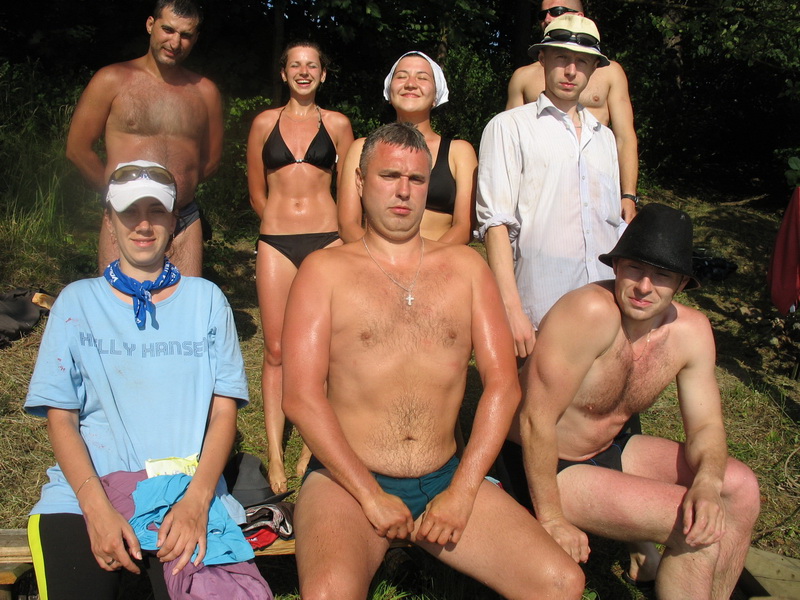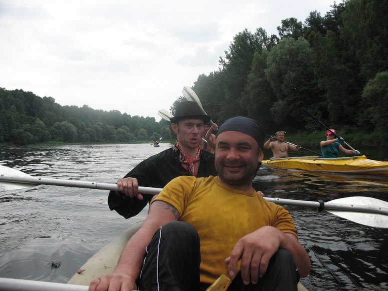 Возле прыгательного моста, как оказалось, Русьянов или одна из Тань, забыли Русьянова мобильный телефон и фотоаппарат. Ироничный Саша говорил, что неизбежно с ростом численности группы возрастает вероятность численности конфузов. Велосипедные я уж точно теперь буду минимизирповать. А байдарочная – что уж тут 13 человек. ..Хорошие гребцы (Трусов и Русьянов) утопически затеяли вернуться туда против течения на байдарке. Бесполезность затеи быстро сделалась очевидной. Поехали на такси (Русьянов с Мишей Миндибековым).