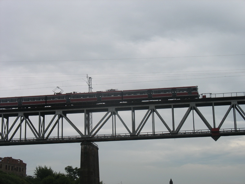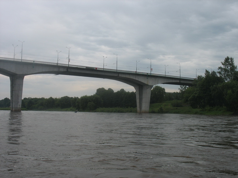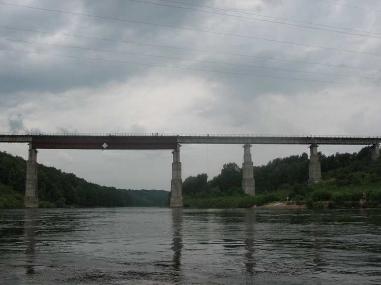 Необходимость в этот сразу отпала. Поворот реки налево довенул, и поперек реки показался мост – такой, как надо – высокий, узкий и запущенный. Когда-то на нем лежало железнодорожное полотно. Теперь же рельсы сняли. Вопреки стандартным жд мостам, этот не имел общепринятых ферм-перекрытий сверху или снизу, только некоторое усиление центрального пролета.