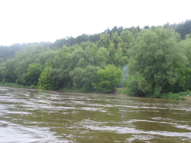 За плотиной река сузилась и появилось существенное течение. Скорость, нашего передвижения, настроение и запал существенно увеличились. Берега Немана продолжали оставаться высокими. Русло быстое и, судя по всему, неглубоководное. Особенно сильное течение в протоках возле каменистых поросших травой островов.