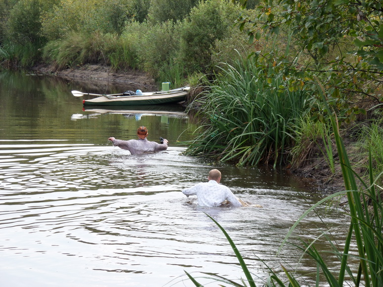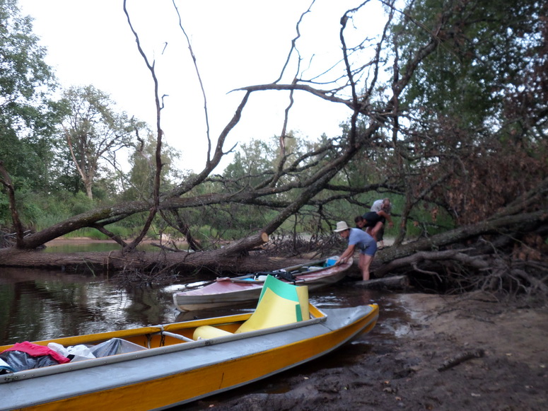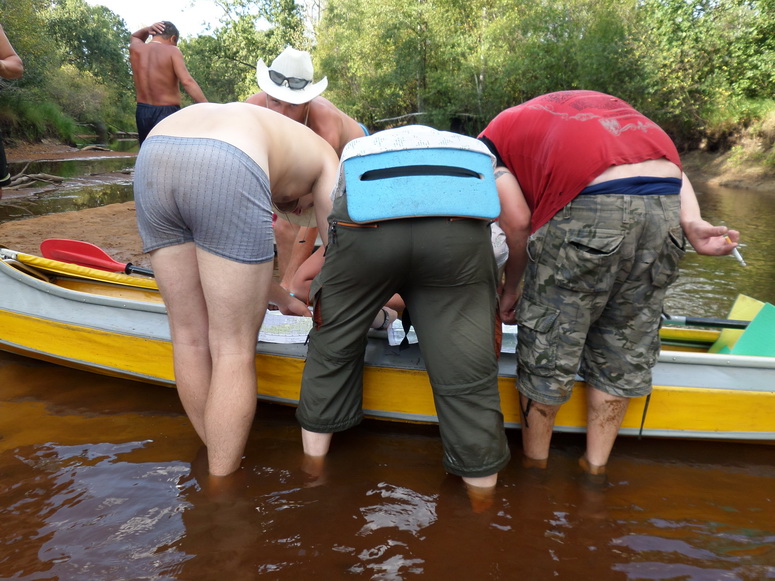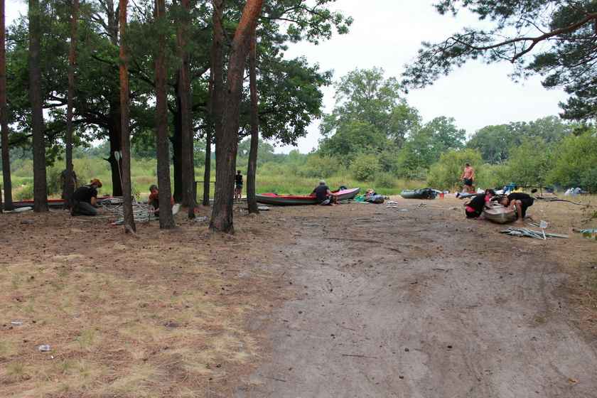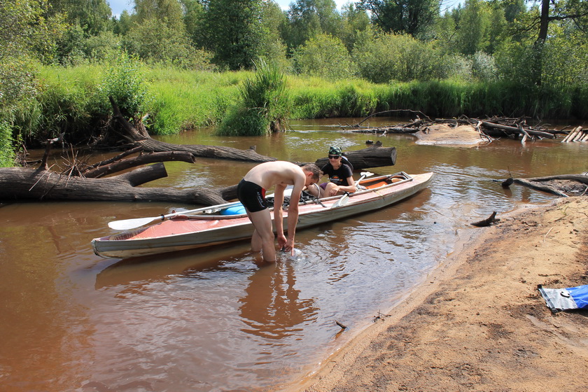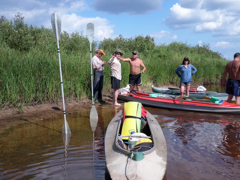 Акватории как раз таки хватало. Река была широка, но исключительно мелка. Постоянно мы садились на песчаные мели или коряги. Приходилось, что хуже всего, вы лазить и сталкивать лодку. Снова садиться на весла и снова вы лазить. Так постоянно. Удовольствие с первых сотен метров сменилось работой. Отдушиной были, пожалуй, не многочисленные участки русла в виде глубоких болотных проток со стоячей водой. Эскадра сильно растянулась по реке. Поход этот имел особенности. Иные могли видеться только утром и вечером. Средства связи тотчас пришли в негодность. Сотовая связь скоро исчезла, рациями как обычно не пользовались.