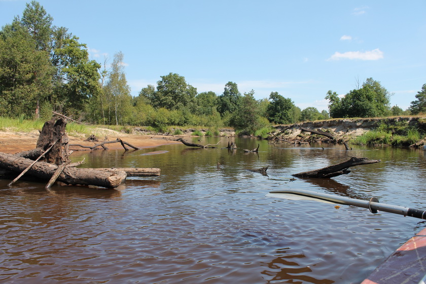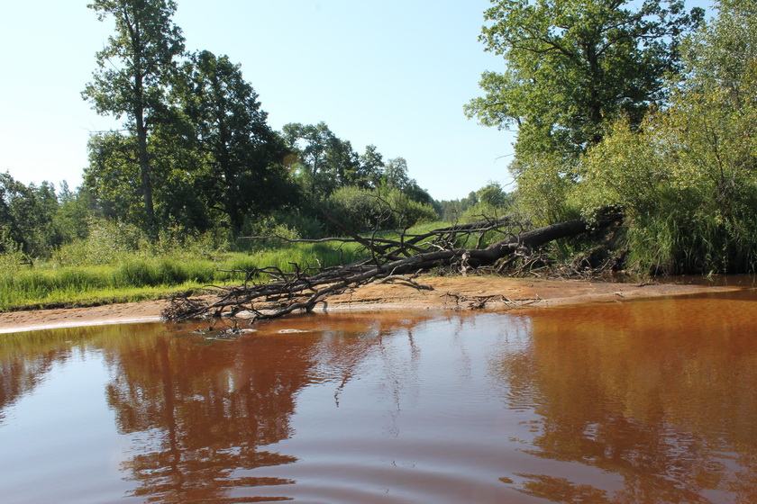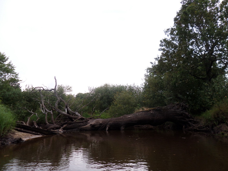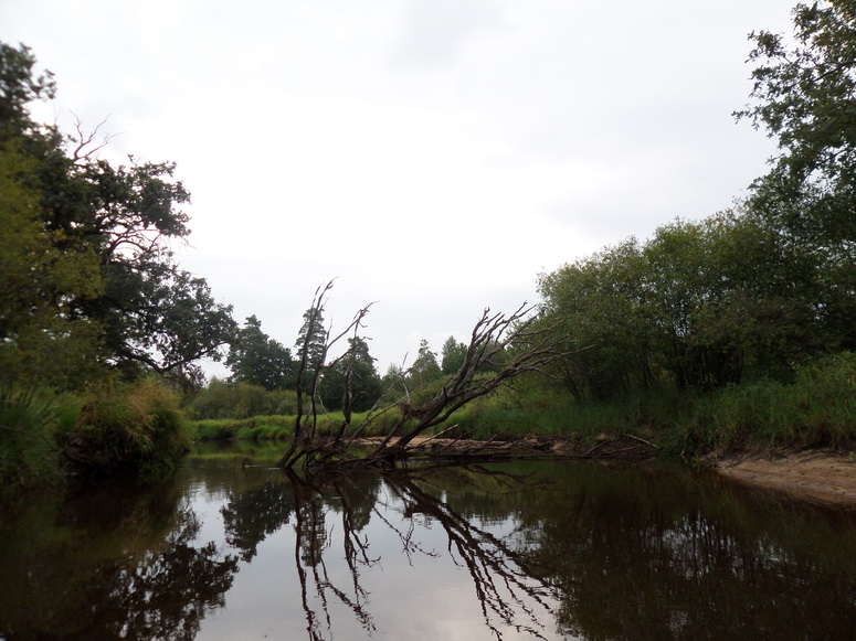 По берегам смешанный, но больше лиственный лес. В основном берега высокие и сухие – мечта водного туриста. Было и здесь обилие дубов черешчатых. Как живых по берегам, так и мореных, раскинувших спрутоподобно свои персты-щупальце.