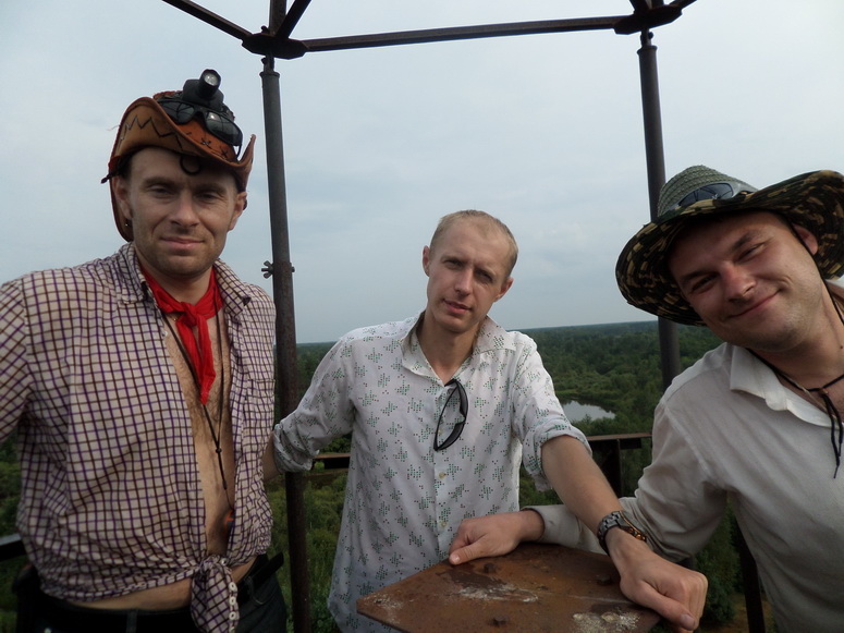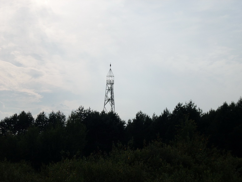 Погода ясная и совершенно безветренная. На тридцать метров мы возвышались над Полесьем и оно простиралось во все стороны. Плоская безрельефная местность не была волнами – просто ковер леса до горизонта, куда ни глянь одинаково. Единственный скрашивающий зеленое море Полесья объект - вышка связи на юг в районе деревни Дзержинск. Оттуда визуально казалось, что отошли мы прилично.