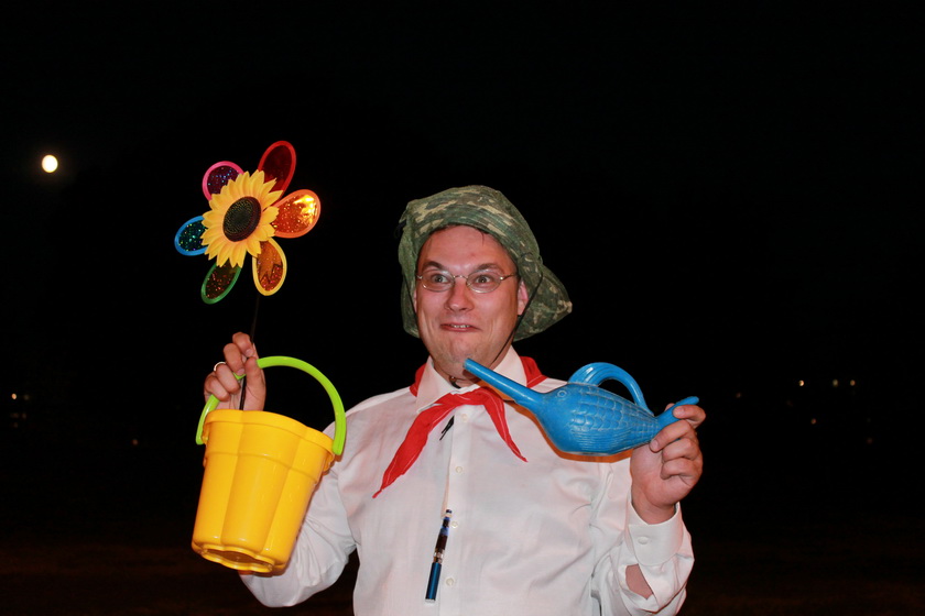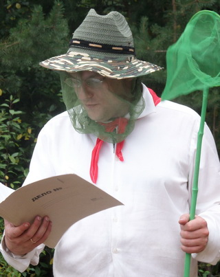 Поход начался вечером 8 августа. Мы собрались возле ветаптеки на улице Дружная. Группа пребывала в воодушевлённом настроении. Особенно колоритен был Игорь-Пузо. Его определили энтомологом. Должность особенно ни к чему не обязывающая, но в роль он вошел исключительно. С репеллентами, пионерским галстуком, в очках, накомарнике и с сачком. Был очень подвижен и улюлюкал в предвкушении развлечений и неизбежной выпивки.