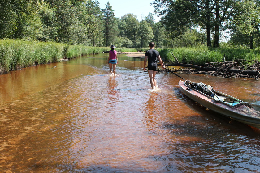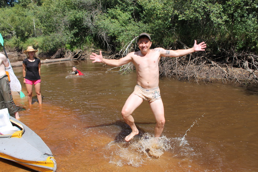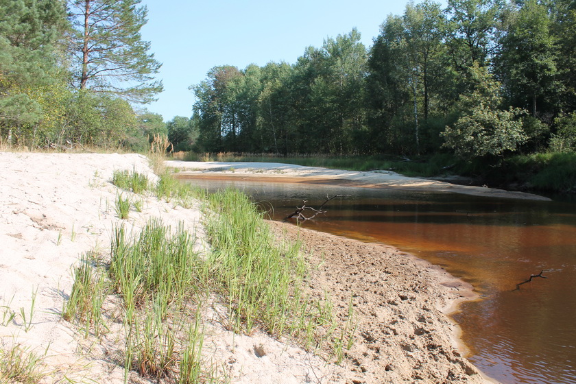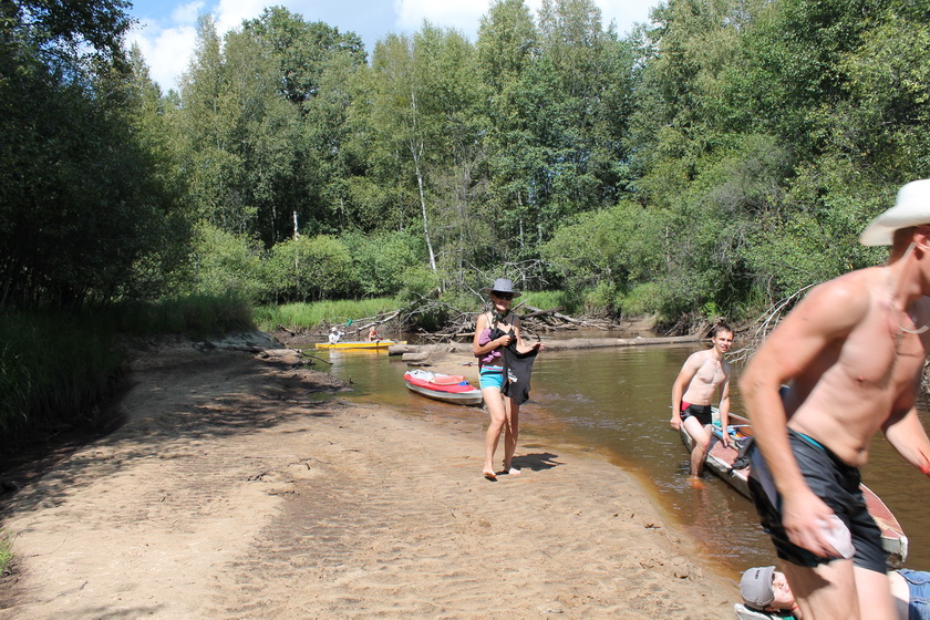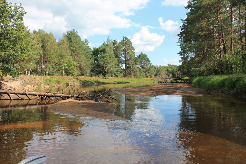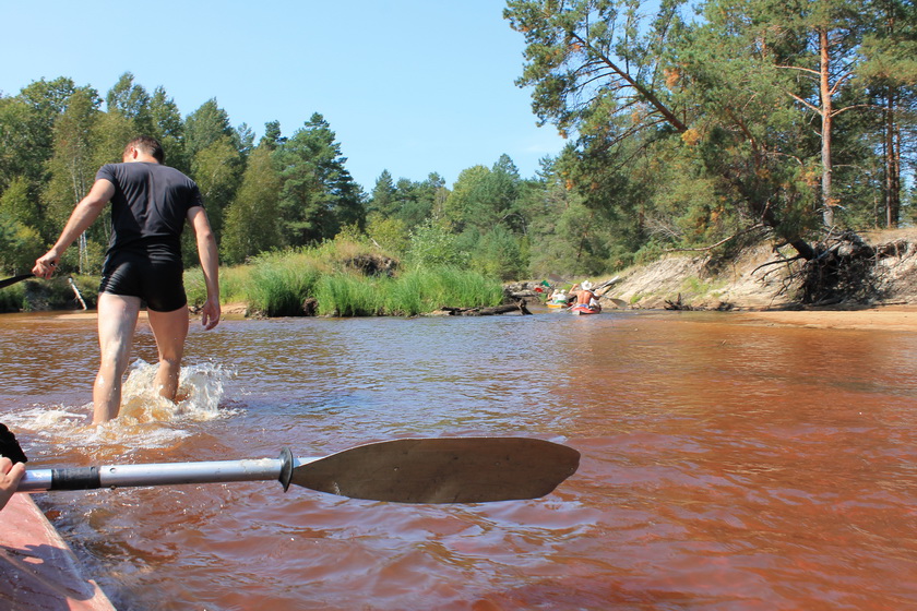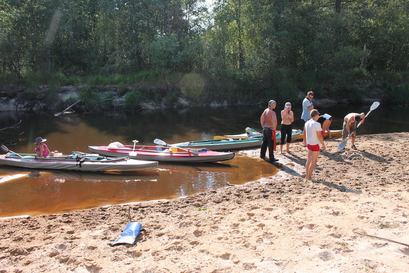 Выехали организованно цугом. Ствига выполняла свои меандры в смешанном лесу. Воды оказалось мало совсем. Она чистая с желтоватым оттенком. Я, Глаз, даже первое время поставил киль. Последний оказался не нужен вовсе – больше плужил по пескам, нежели заруливал.