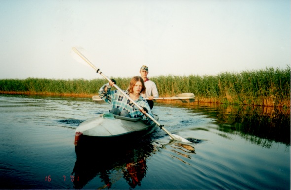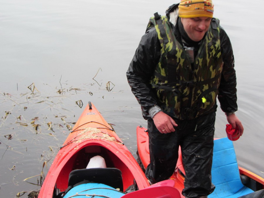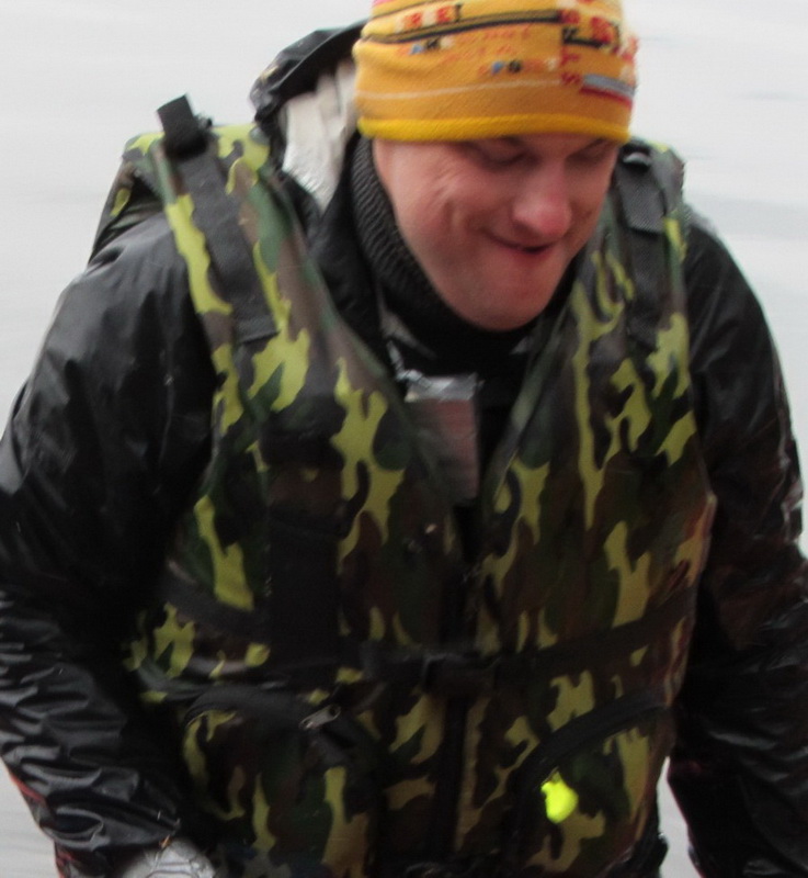 Приключения начались тут же, как говорят, «не отходя от кассы». Еще не сошла городская спесь, как это обычно и происходит, энергии куда-то сразу требовалось дать выход и сразу всему избытку. Алкогольное опьянение средней степени, в коем пребывала наша туристическая группа, этому только способствовало. Палыч (Петруха), находясь на корме, в экипаже со Славой Электриком, решил узнать тактико-технические возможности пластиковых байдарок от Горбикова, а точнее, маневренность и поворачиваемость (хотели, скорее всего, выполнить маневр телемарк). Низкобортная байдарка тотчас разочаровала своей слабой остойчивочстью - черпанула бортом и была вместе с экипажем такова. На прямом участке русла с практически стоячей водой, на фоне сталисто-серой и слегка морщинящейся глади ярко выделялись кислотно-красные и оранжевые байдарки с сидящими в них гребцами. Среди этого всего перевернутая вверх дном узкая стрела киля одной из лодок и две торчащих из воды головы, медленно продвигающиеся вместе с байдаркой к берегу. Жилеты, обязательный атрибут туриста-водника, предварительно надетые практически каждым из участников мероприятия, оказались весьма эффективными, помогали не только в экстренных случаях (как этот), но и пассивно – защищали от ветра и являлись маяками для сзади идущих.