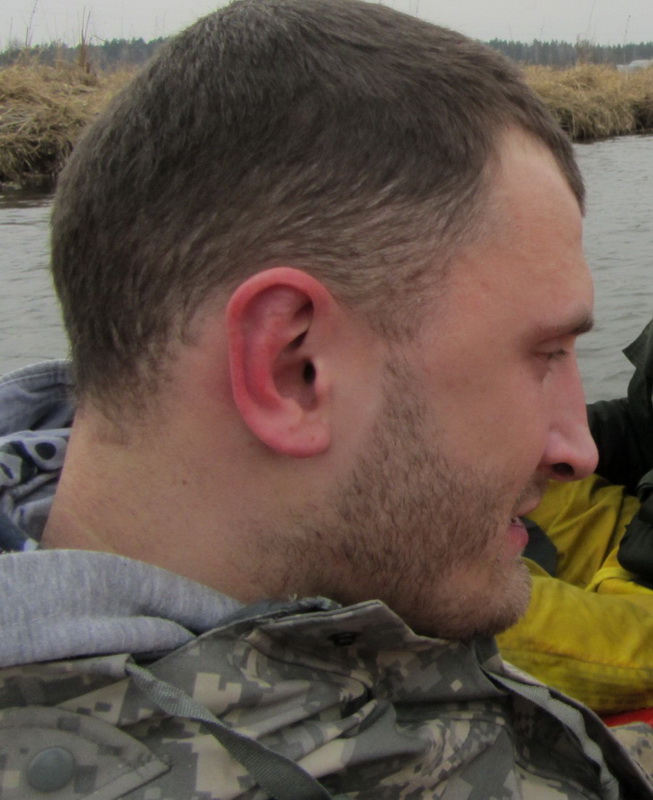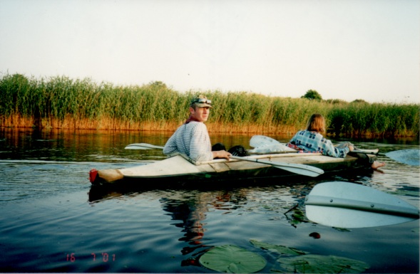 Ночнело…. Володю и Анатолия нашли по вчерашнему сценарию. Только теперь были они на левом берегу. Появились неожиданно. Русло выполняло плавный левый поворот, как вдруг прервался тростник и они «как зайчики» сидят и ждут. Хотелось тепла и поесть. От воды менее ста метров тропа в тростнике отходила к коренному лесному берегу. Байдарки не стали стягивать аж туда. Ограничились тем, что вытянули на берег у воды.