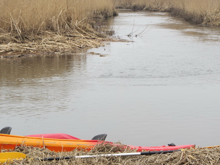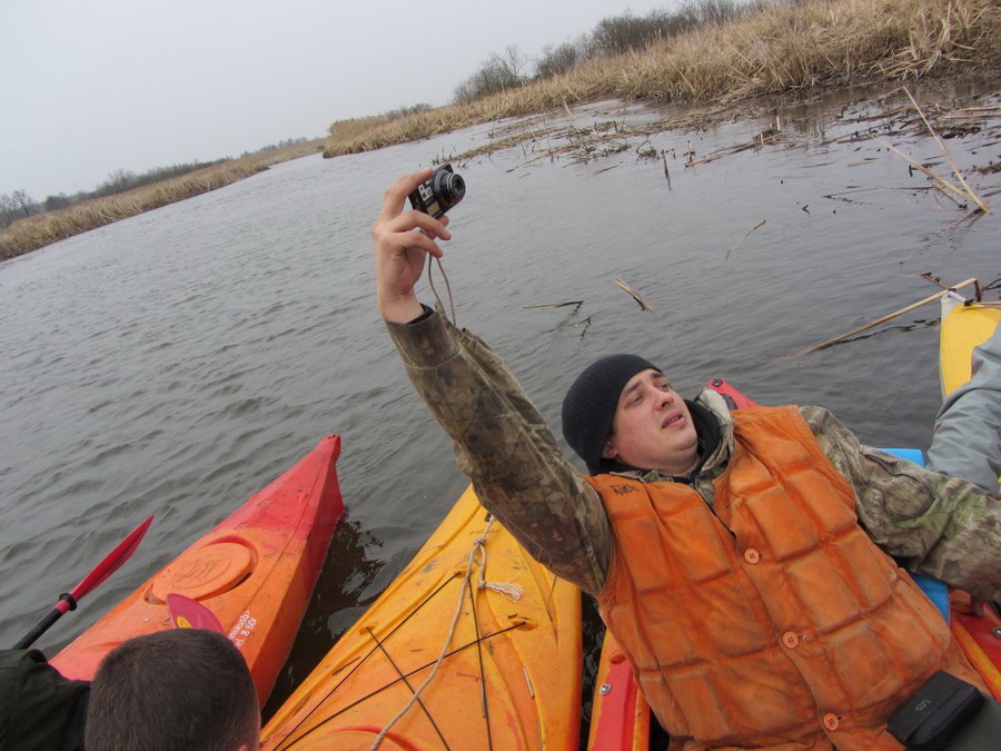 Пообедали (позавтракали), начали загружаться по лодкам, сделав фото перед выходом. Пейзаж существенно не менялся – камыш, он километрами простирался ококём обоих берегов. В воде дрейфовали гигантские корнеплоды рогоза – обычное дело по весне.