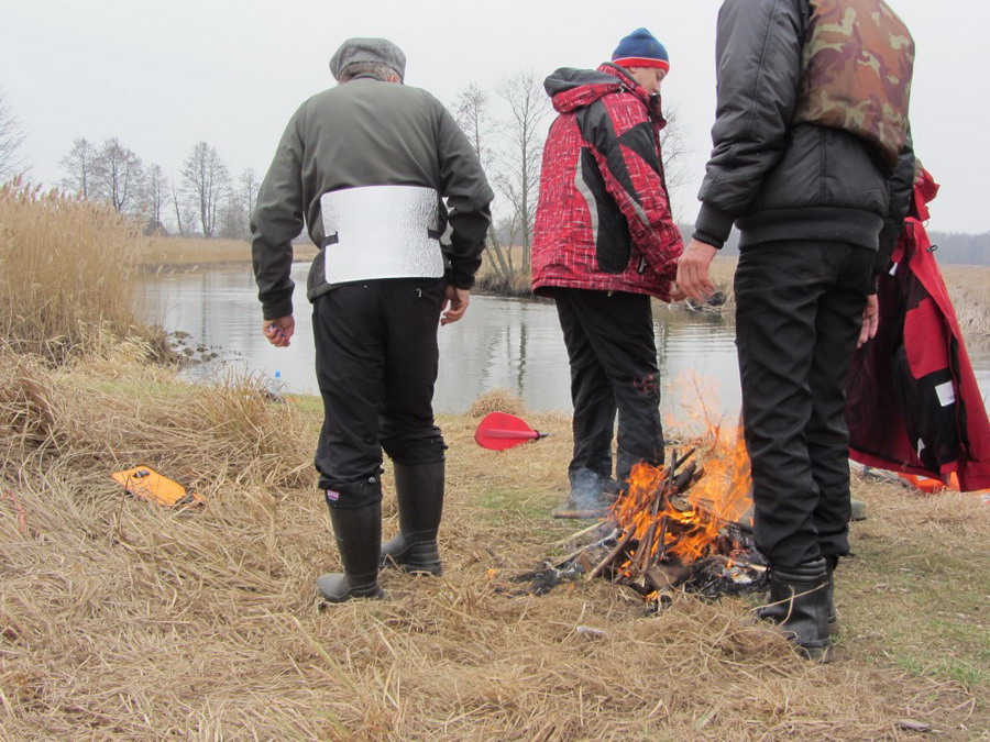 Лиха беда начало. До середины ходового дня было зафиксировано ещё 2 случая принятия водных процедур, что сказалось на общей скорости путешествия. Экипаж желтой КНБ Свирь-Н перевернулся километров через десять от начала маршрута. Под мостом поток резко сужался до нескольких метров. Течение было существенным. Виталий Роговцов с Матросом поставили судно лагом. Навал воды сделал свое дело. Коллективными усилиями и фрикцинно вытянули поверженное судно. Выжимали вещи. Буль-буль в межсезонное и даже зимнее время давно сделалось обыкновенным делом и не воспринимается теперь, как чрезвычайное происшествие. Только страдает материально-техническая база (телефоны чаще всего).