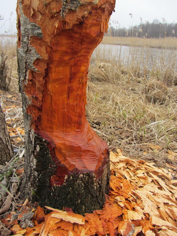 Утро воскресенья было пасмурным, но по-прежнему без ветра. Бобры, следов которых было великое множество, не доели березу. В стволе существенного калибра образовалась на две трети краснеющая узура. Остаток комля еще был способен удерживать ствол с кроной; дерево, однако, все равно было неизбежно обречено на гибель. Возле кустов несколько в сторонке стоял крест памяти утонувшего.