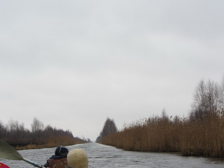 Вышли на час раньше, и после полуторачасовых скитаний по лабиринтам Птичи, попали к каналу, прямому, широкому, со встречным сильным ветром и дождем. Естественно, что ветер был встречным!