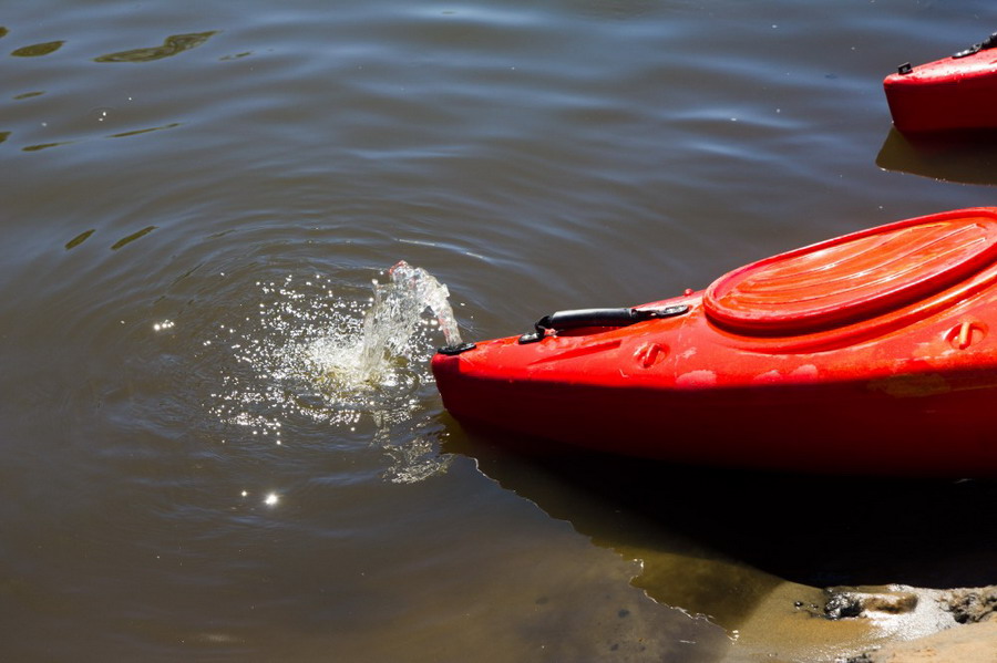 После сиесты первый и третий моторы «Абсента-3» заработали, правда, вполтяги. Стрелка навигатора, между тем, хоть и медленно, но верно подползала к отметке, которую я, заметив на спутниковых картах странный белёсый бурун на реке, окрестил «Порог». Приблизившись, наконец, мы увидели плотину, перекрывающую всё русло. Влево уходил какой-то, перекрытый железной заслонкой, канал. Ниже плотины уровень реки понижался метра на два; вода с шумом падала к подножию металлических свай, создавая турбулентные потоки, которые я и обнаружил на фотографии со спутника. Пройти по воде здесь не было никакой возможности — приходилось обносить. Тут уже суетилось несколько наших экипажей, в том числе и «Американский Носик». На обносе моторы «Абсента» окончательно заглохли, и Глаз ругался страшным голосом: «Что вы, б...дь, уже байдарку перетянуть не можете?!» По обе стороны плотины собралось большое количество рыбаков, с увлечением наблюдавших неожиданный комичный спектакль.