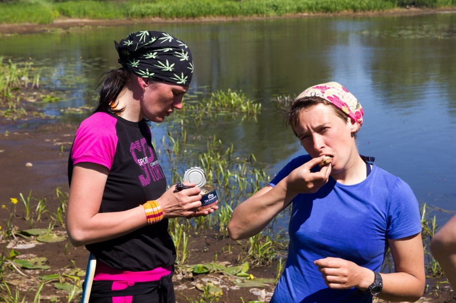 Не обошлось и без традиционного посвящения в водники. Товарищ Полковник и без того выглядел, как настоящий морской волк — его штормило, как в девятый вал. Чуть поодаль вырисовывалось загадочное сооружение, оказавшееся наполовину вытащенной на песок и заброшенной баржей. Пацаны тут же заполнили её цистерны отработкой байдарочных моторов. Загрузившись в микроавтобусы, дорвались, наконец-таки до цивилизации — в деревне Вересница оказался вполне приличный магазин. Место встречи изменить нельзя — затарившись, обнаружили на магазинной стоянке бус Руси.